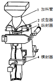 图2 机械结构 2、工艺流程 在自动工作模式下各执行机构需要按一定顺序执行动作,是按照包装材料进给、制袋、给料计量和封口传输的顺序。 (1)因为包装材料带有公司宣传标准和图案,要实现准确定位剪切,所以采用伺服控制系统。伺服电机每转一圈是1000个脉冲,利用PLC发出的高速脉冲可以精确迅速控制伺服电机运行和停止。改变过去包装图案不完整品相残次屏多的问题,提高生产效率和成品率。 (2)给料采用定位精度高的伺服电机。伺服电机可以按照PLC发出脉冲数来精确定位,实现精确给料。另外还具有双重反馈装置,伺服电机可以返回运动脉冲数从而实现精确给料,称重传感器作为第二种检测,检查填充重量,双重计量方法有消减少了包装计量不准的问题。 (3)剪切控制系统采用热电阻加热自动PID恒温控制,封口迅速美观。 三、电气软件设计 填充式食品包装机械一般较小,为了便与操作又要节省空间,采用占用空间较小65535色高分辨率真彩显示的WEINVIEW MT6056I人机界面。在人机界面中设计多幅画面,参数设置、运行监控、故障报警、配方存储和调用、手自动控制。 采用PLC和人机界面控制的自动包装机可以实现自动制袋、给料、自动计量、自动封装等多项功能,并可对生产过程进行实时监控,完成自动诊断、自动报警和数据上传等功能。由于MT6056I的强大的存储空间可以保存多组包装配方,减少操作工劳动量提高生产效率。 另外包装形式多样,以为机器只能包装形式单一,图中高速填充式包装机可以包装:枕形袋、烫边袋、三角包、打孔袋、多连包等形式。 人机界面显示系统如图1和图2所示。可以根据用户要求,设定包装容量、制袋长度、每分钟包装速度、系统可以精确显示出实际产量(袋数)和准确计量数(填充量),能够对计量数手动清零,具有正常的启动、停止及点动按钮,配方存储和调用。